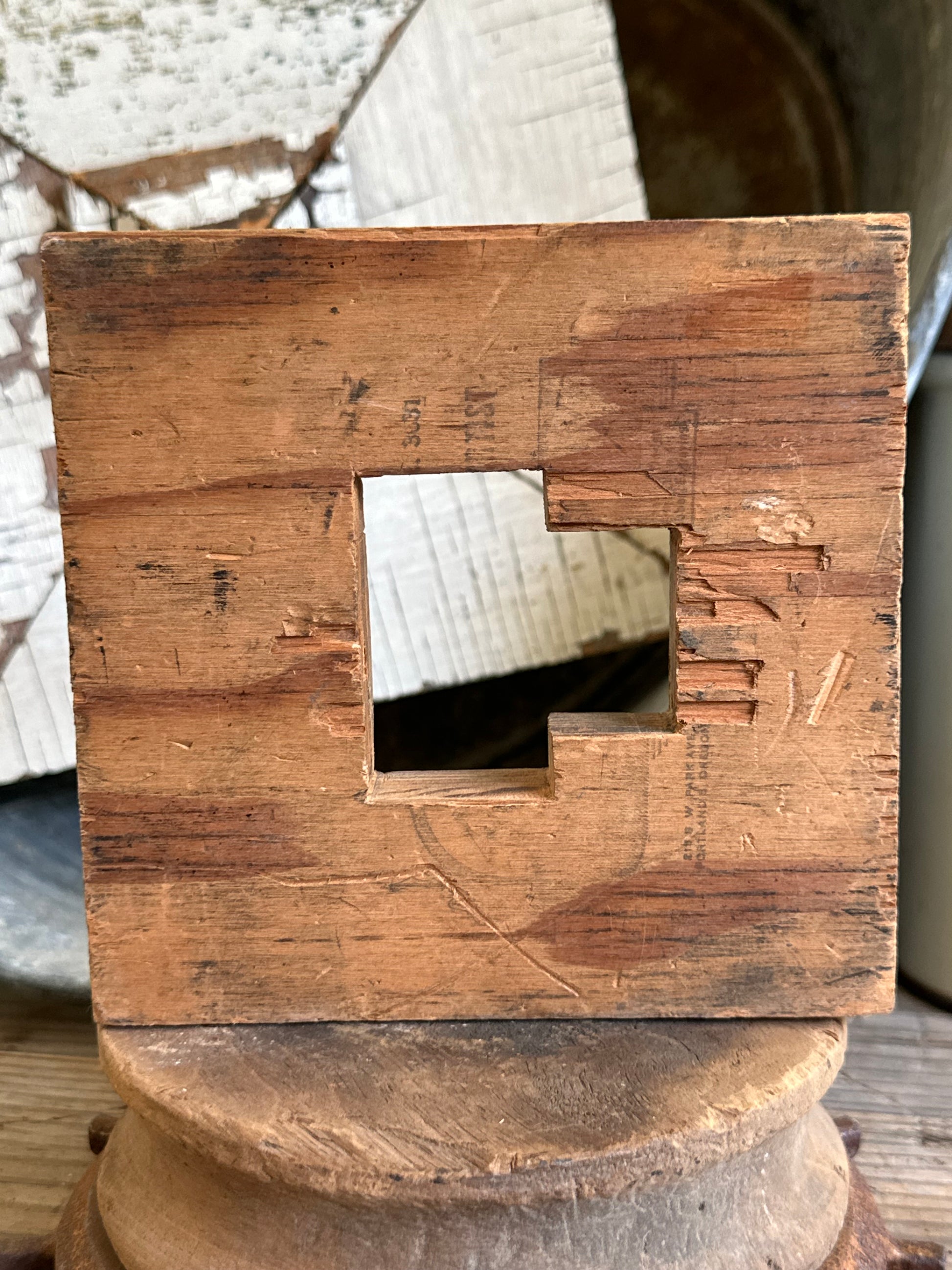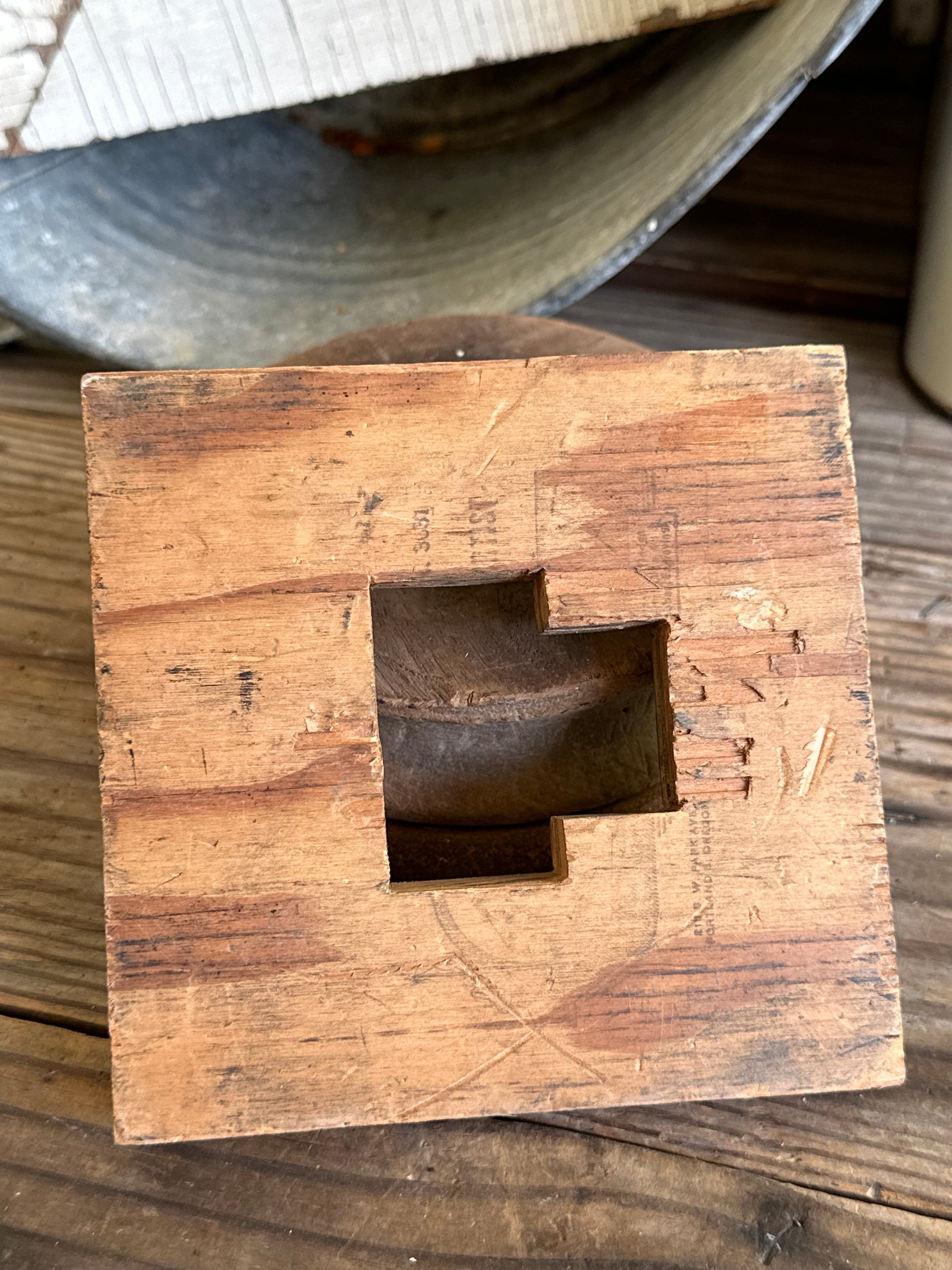 Cent symbol stamp/print base plate. Approx 5 1/8"x5 1/4", 7/8" thick. Weathered and worn condition, see photos.